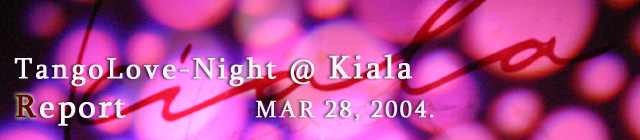 今日もイイ曲かけまっせ〜ってな感じで、今夜も「ノリ」と「間」を重視したセレクション。 このHPでもコラムで書いていますが、僕のDJスタイルは本場の選曲スタイルとチョット違います。 日本の土壌に合わせた、「日本流」。本場と違って、朝までパーティーやっている訳じゃないですしね。 のんびり構えてなんていられません。 限られた時間で美味しいところをギュッと詰め込むのは、実は結構大変な作業なんですよ。 しかし、最近では僕のスタイルをとても楽しんでくれるお客様が非常に多く、嬉しい限りです。 最近では日本のタンゴの草分け的団体である「すいよう会」の某DJの方にまでおほめの言葉を頂きました!! そろそろ僕ちゃん、自信を持ってもよいかしら!?